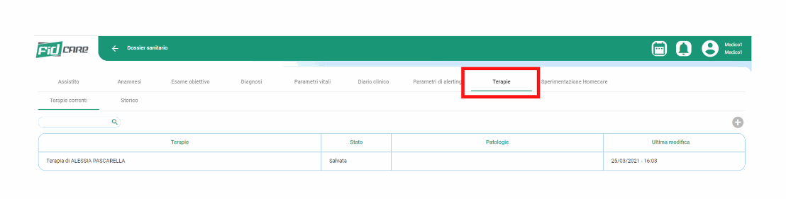 Per visualizzare l’elenco delle terapie dei propri assistiti, il MMG/PLS deve semplicemente accedere alla sezione “Terapie” della piattaforma software FIDCARE.
