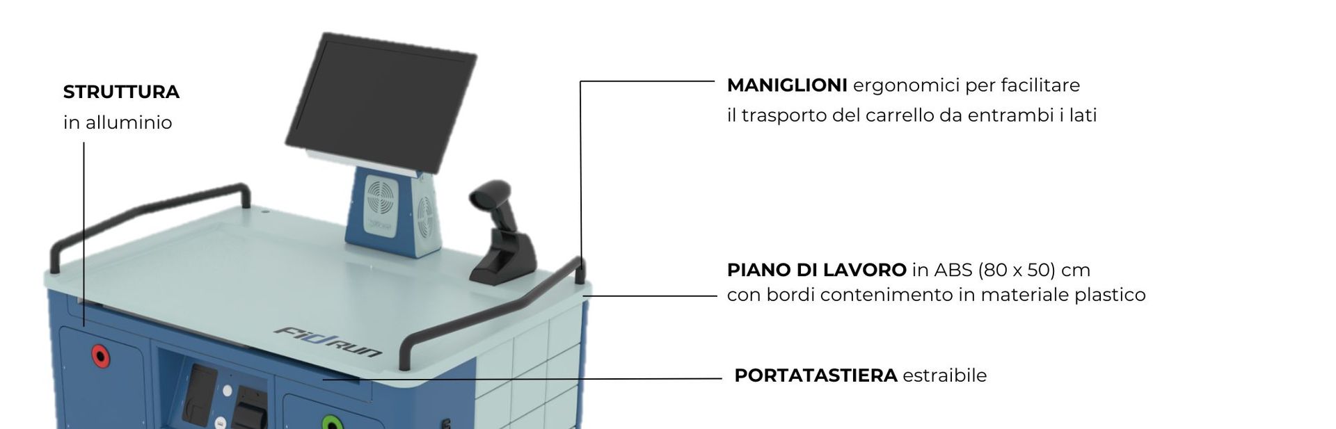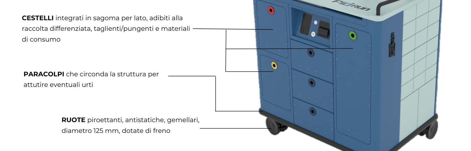 Robusto nella struttura, FIDRUN è concepito appositamente per l’uso in reparto e presenta una serie di caratteristiche che lo rendono particolarmente agevole.